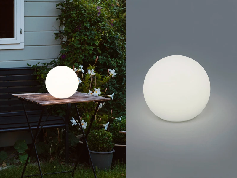 Über eine USB-Akku-Ladefunktion kann die Außenleuchte geladen werden und somit flexibel und ohne Kabel verwendet werden. Mit einem Durchmesser von 25 cm ist sie eine äußerst praktische und optisch ansprechende, mobile Lichtquelle für den Außenbereich.