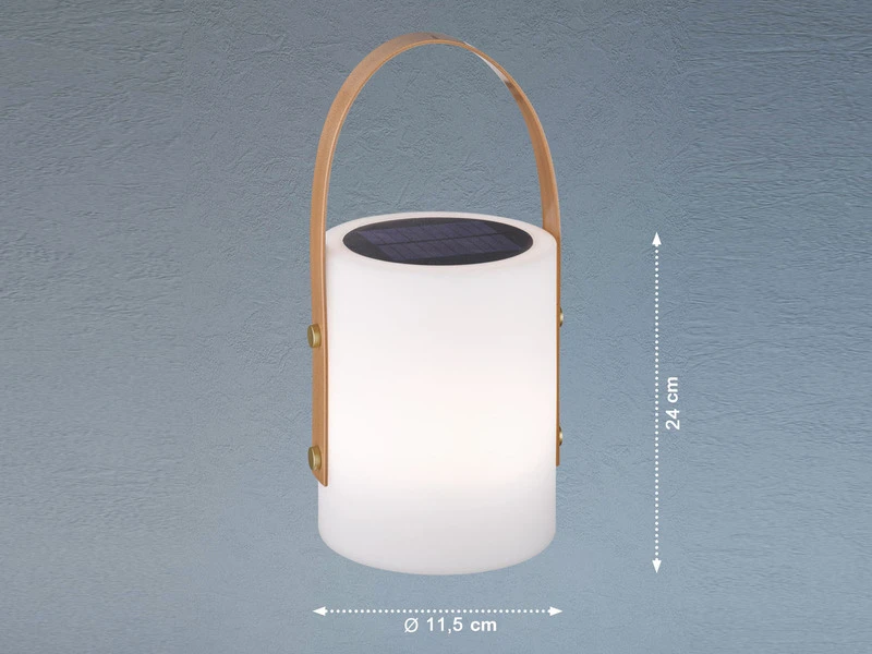 Das beiden Solar Tischleuchten aus unempfindlichem, weißem Kunststoff haben einen Durchmesser von jeweils 11,5 cm und eine Höhe von 24 cm. Dank des integrierten Akkus können Sie sie überall aufstellen, ohne sich Gedanken über ein Kabel machen zu müssen.