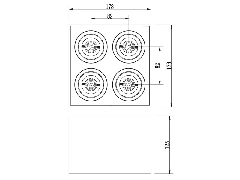 Die Deckenleuchte ist mit vier GU10 Fassungen ausgestattet und für vier Leuchtmittel mit max. je 35 Watt geeignet.