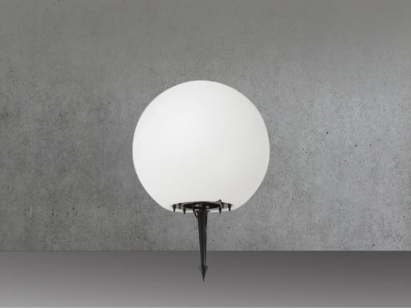 Platzieren Sie die mit 3 Meter Stromkabel und Erdspieß ausgestattete Kugelleuchte dort wo Licht benötigt wird. Die Gartenkugel mit 45cm Durchmesser schafft eine stimmungsvolle Atmosphäre auf der Terrasse am Teich oder dem Balkon.