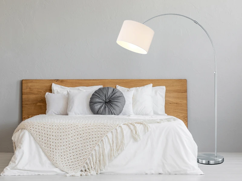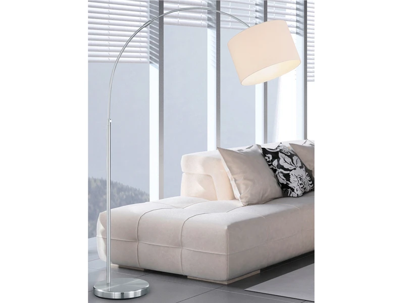 Der weiße Stoffschirm hat einen Durchmesser von 30cm, der Leuchtenkorpus in Silber matt komplettiert das zeitlos moderne Erscheinungsbild der bis zu 215cm hohen Standlampe, die im Wohnzimmer und Schlafzimmer ihren Einsatzbereich findet, oder Ihren Esstisch effizient beleuchtet.