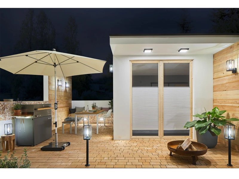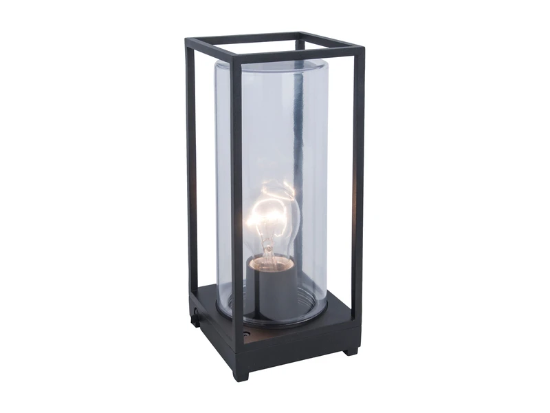 Die Tischleuchte hat eine Höhe von 27,2cm und eine Größe von 12 x 12cm. Mit einer Schutzart von IP44 kann sie in fast allen Outdoor Bereich zur dekorativen Beleuchtung eingesetzt werden, z.B. als Außenbeleuchtung für Ihren Eingangsbereich, als Terrassenbeleuchtung oder Balkonbeleuchtung auf dem Tisch oder Boden.