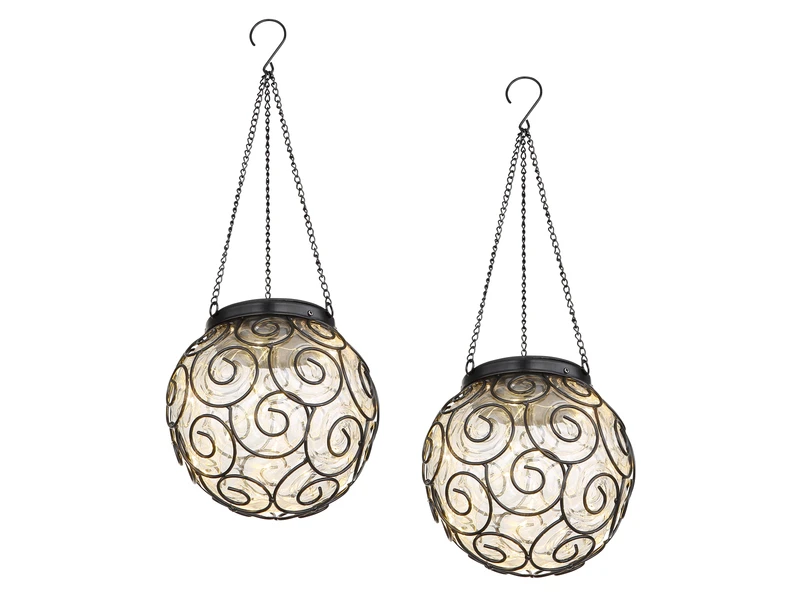Diese wunderschönen Solarkugeln begeistert durch tolles Design. Eine klare Leuchtkugel aus Kunststoff ist von schönen Metallverzierungen in Schwarz umhüllt, was den Solarlampen ein romantisches Flair verleiht.