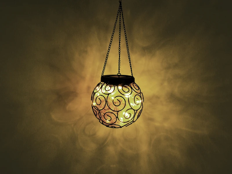 Die vielen kleinen Lämpchen im Innerem des ausgefallenem Lampenschirmes sorgen nach Dämmerung für faszinierende Lichtstpiele und eine romantische Atmosphäre in Ihrem Außenbereich.