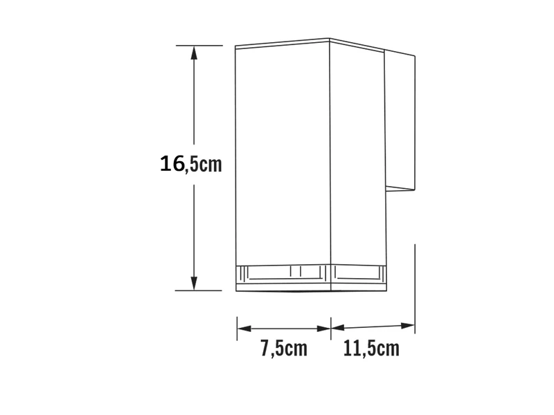 Mit einer Höhe von 16,5 cm sowie einer Breite von 7,5cm und Tiefe von 11,5cm ist die Fassadenleuchte auch bei der Gartengestaltung sehr gut als dekorative Wegeleuchte geeignet. Die LED Wandleuchte für außen ist mit 1 GU10 Fassung ausgestattet, und wird mit 1 Leuchtmittel mit 5 Watt, 400 Lumen 3000 Kelvin Warmweiß geliefert.