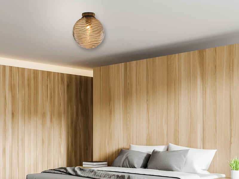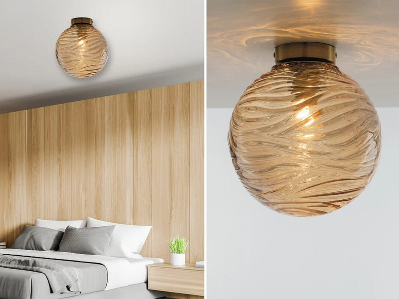 Die Design Deckenleuchte besteht aus einem Glasschirm mit einem Durchmesser von 25cm sowie einer Aufhängung in Messing. Der Industrial Look der insgesamt 27,4cm hohen Leuchte wird durch den angesagten Farb- und Materialmix perfekt abgerundet und sorgt für ein tolles Erscheinungsbild. Durch die runde Form scheint das Licht nach oben und unten und erzeugt ein wirkungsvolles Lichtspiel an den Wänden.