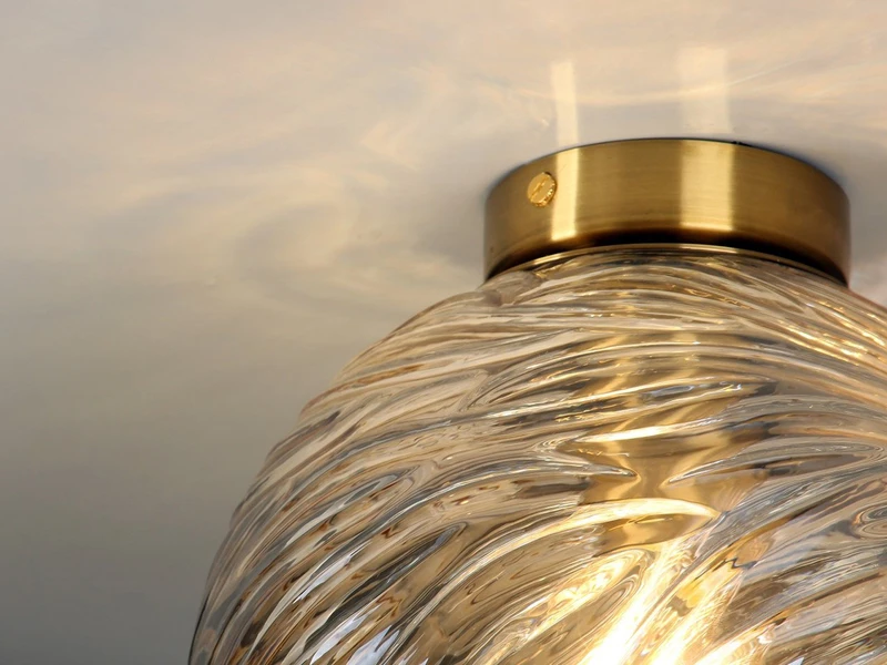 Das Design der Bubble Leuchte folgt einer ersichtlichen Guideline: klare Linien und Strukturen. Sie verzichtet auf viel Schnickschnack, setzt auf Schlichtheit, und ist ein stylisches Highlight für Ihren Wohnraum. Das puristisch-minimalistische Design ist ein Mix aus edler Metall-Optik in Messing und einer Champagner Glaskugel mit konzentrischem Wellenmuster.