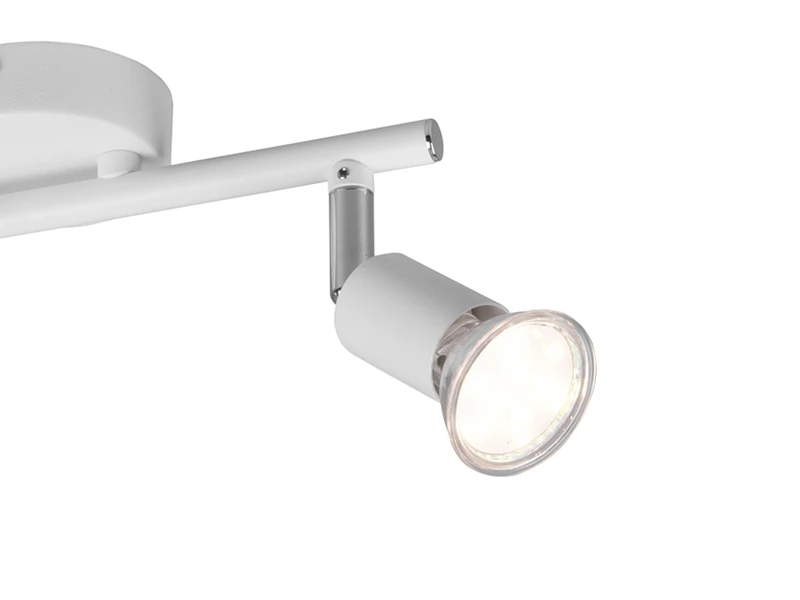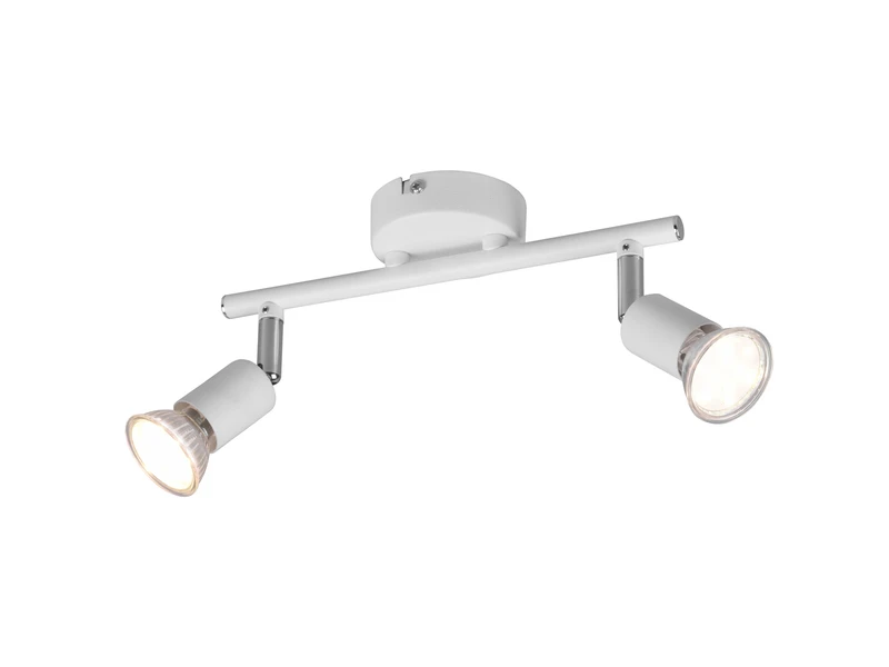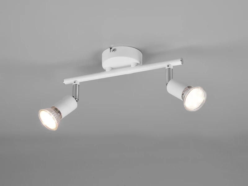 Dank der klaren Linien und der runden Formen macht die 2 flammige Leuchte besonders im Wohn- oder Esszimmer eine gute Figur. Dank des flexibel schwenkbaren Spotkopfes ist es möglich, unterschiedliche Gegenstände oder Wohnbereiche gekonnt in Szene zu setzen. Die Farbgestaltung in Weiß matt lässt viel Spielraum bei der Kombination mit vorhandenen Farbkonzepten und rundet jeden gradlinigen Einrichtungsstil ab.