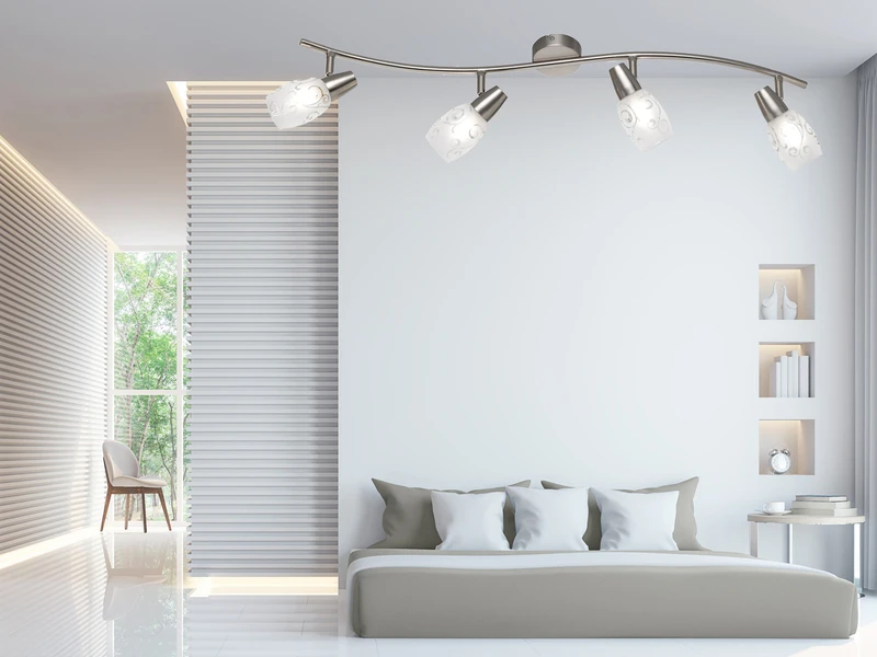 Der vierflammige Deckenbalken hat ein zeitloses Design und wird durch das Glas mit Blütenmuster zu einen echten Hingucker. Er schafft mit seinem Licht eine gemütliche Stimmung in Ihrem Wohnbereich, der zum Verweilen einlädt.