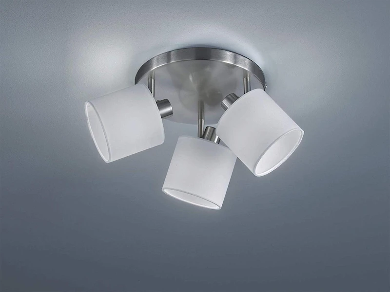 Die Leuchtenköpfe lassen sich neigen und drehen, um die gewünschten Bereiche zu beleuchten. Dank des schlichten Designs aus Metall in Silber matt mit 3 Stofflampenschirmen in Weiß ist die Innenlampe schon im Hellen ein wahrer Hingucker, und lässt sich in verschiedene Einrichtungsstile integrieren.