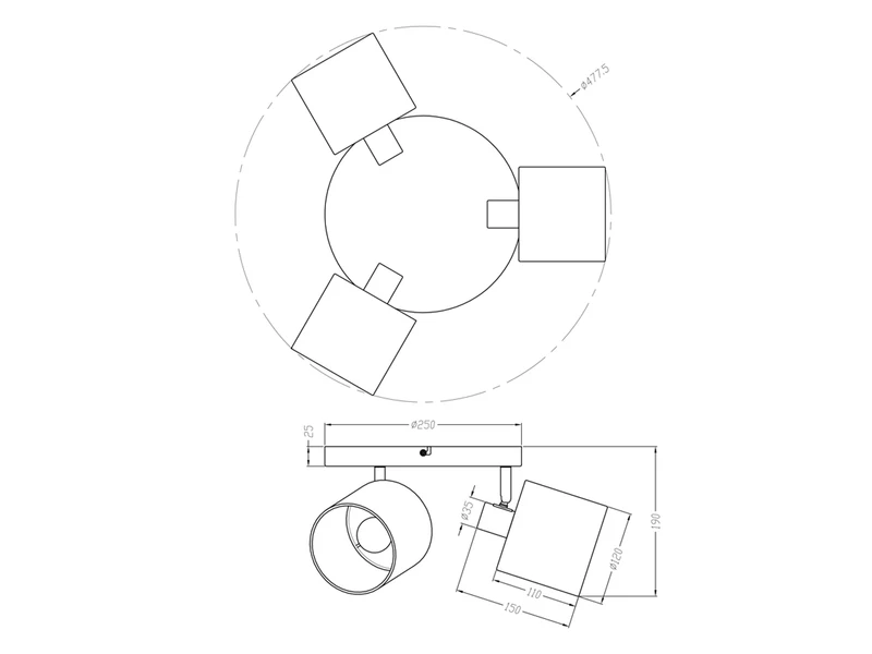 Der Strahler ist mit drei E14 Fassungen ausgestattet und für Leuchtmittel bis max. 28 Watt geeignet, und wird mit dimmbaren LED Leuchtmitteln a´ 5 Watt, 400 Lumen & 3000 Kelvin in Warmweiß geliefert. Diese LED Lampe können Sie über Ihre Hausinstallation dimmen und so zusätzlich für eine ganz individuelle Beleuchtung sorgen.