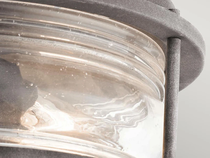 Diese Außenleuchte im Industrial Style besticht durch ihr rustikales Design und ihre hochwertige Verarbeitung. Der Korpus der Leuchte besteht aus anthrazit farbigem Stahl, der Lampenschirm aus strukturiertem Glas.