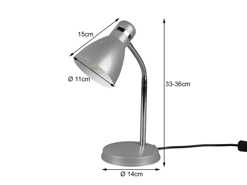 Der trichterförmige Lampenschirm aus Metall mit 11cm Durchmesser erzeugt eine helle und freundliche Atmosphäre in Ihrem Wohnraum und kann dank dem Flexgelenk flexibel ausgerichtet werden.