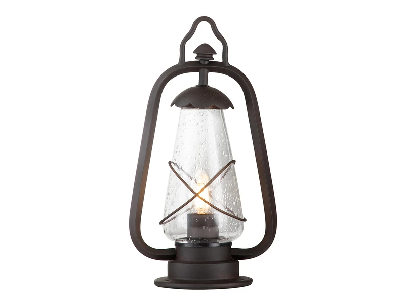 Die Sockelleuchte im rustikalen Stil, die an eine alte Bergmannslampe erinnert, besteht aus Stahl in Bronze Antik und einem schützenden Glaszylinder aus Strukturglas. Dies verleiht ihr den typischen alten Sturmlaternen Look. Mit ihrer widerstandsfähigen Konstruktion trotzt sie Wind und Wetter und spendet zuverlässig Licht.