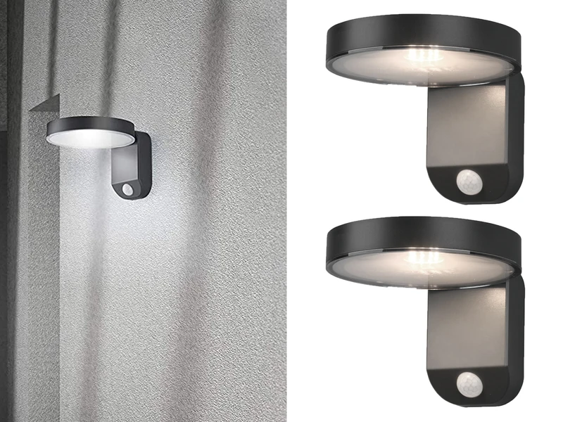 Gefertigt sind die runden Wandlampen aus wetterfestem Kunststoff in Anthrazit und dank Schutzart IP44 können sie in fast jedem Outdoor Bereich zur Fassadenbeleuchtung eingesetzt werden, z.B. als Außenbeleuchtung für Ihren Eingangsbereich, als Terrassenbeleuchtung oder auch als Wegeleuchte an Ihrer Gartenhütte.