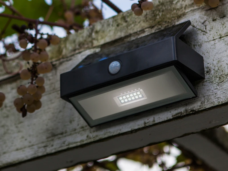 Flache Solarleuchte mit integriertem Solarpanel und Bewegungsmelder, für weiches & helles Licht, wo immer Sie es benötigen.