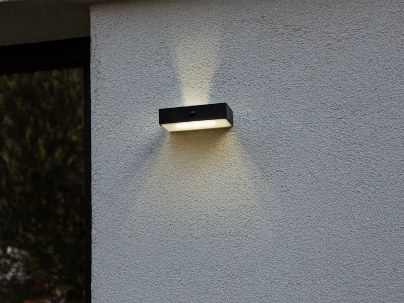 Flache Solarleuchte mit integriertem Solarpanel und Bewegungsmelder, für weiches & helles Licht, wo immer Sie es benötigen.