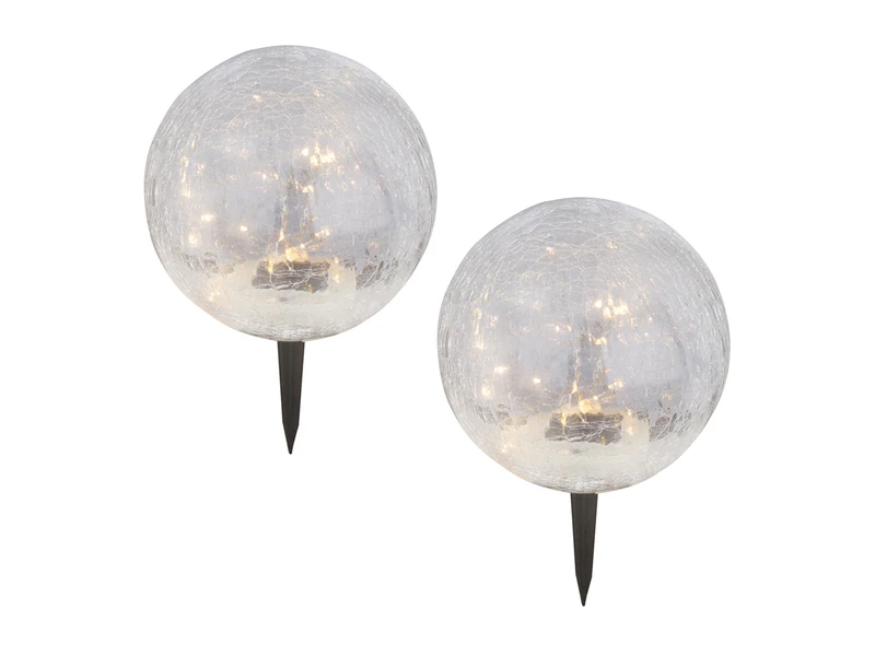 Diese ausgefallenen Solarkugeln sorgen mit den vielen kleinen Lämpchen und dem Glasschirm in Bruchoptik für faszinierende Lichtstpiele in Ihrem Außenbereich.