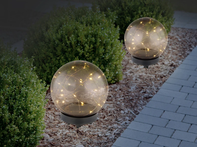 Diese ausgefallenen Solarkugeln sorgen mit den vielen kleinen Lämpchen und dem rauchfarbigen Kugelschirm für faszinierende Lichtstpiele in Ihrem Außenbereich.