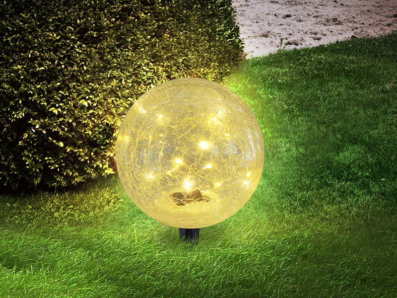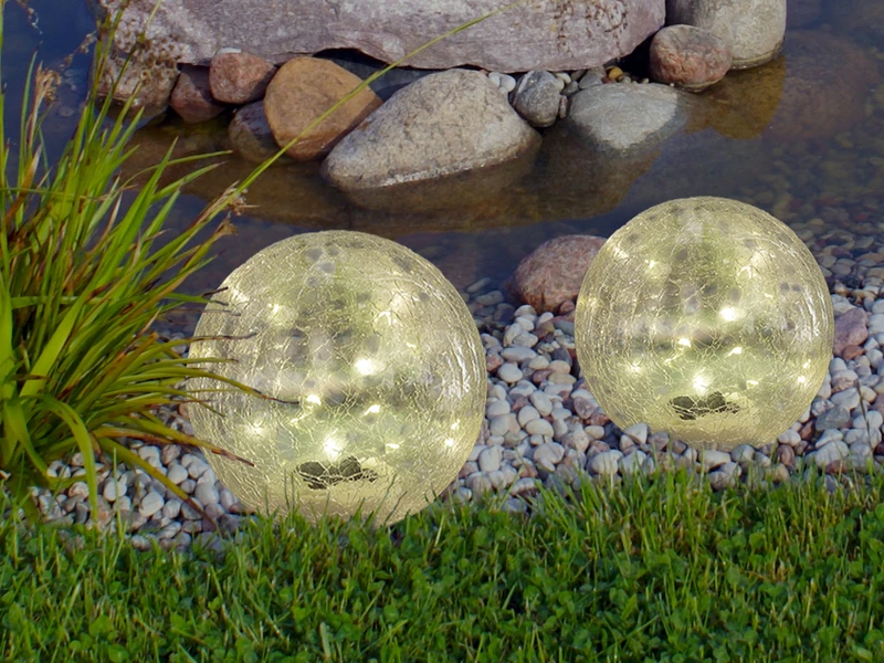 Diese ausgefallenen Solarkugeln sorgen mit den vielen kleinen Lämpchen und dem Glasschirm in Bruchoptik für faszinierende Lichtstpiele in Ihrem Außenbereich.