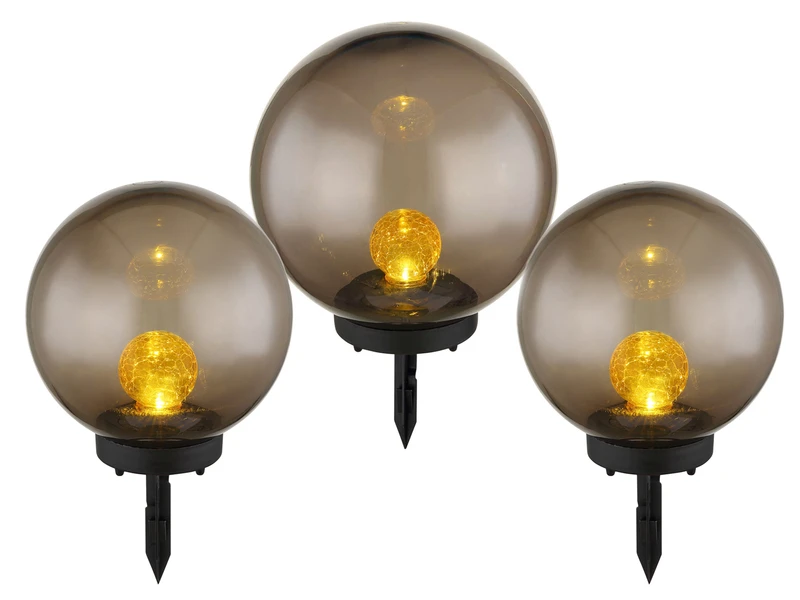 Mit ihrem kugelförmigen Design lassen sich die rauchfarbigen Erdspießleuchten besonders vielfältig verwenden. Dank Schutzart IP44 sind die Gartenlampen zudem sicher gegen Spritzwasser geschützt, so dass Sie sie in jedem gewünschten Außenbereich platzieren können, beispielsweise zur dekorativen Gartenbeleuchtung und stimmungsvollen Terrassenbeleuchtung, als schönen Lichtpunkt im Blumenbeet, als dezente Wegeleuchten für dunkle Zuwege im Außenbereich oder als zeitgemäße Außenlampen in jedem anderen Outdoor Bereich.