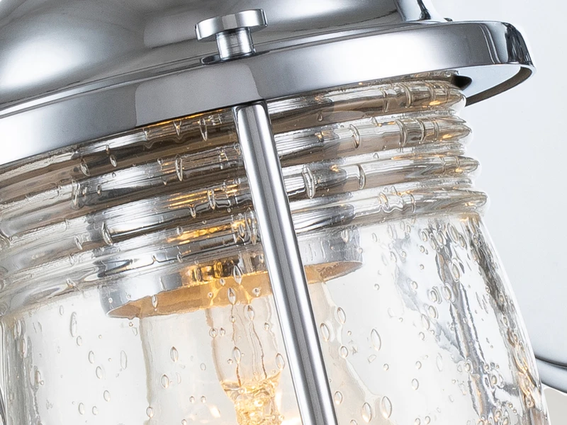 Langweilige Badbeleuchtung war gestern! Diese ausgefallene Innenleuchte im Industrial Style besticht durch ihr ausgefallenes Design und ihre hochwertige Verarbeitung. Der Korpus der Leuchte besteht aus chrom farbigem Stahl, der Lampenschirm aus strukturiertem Glas.