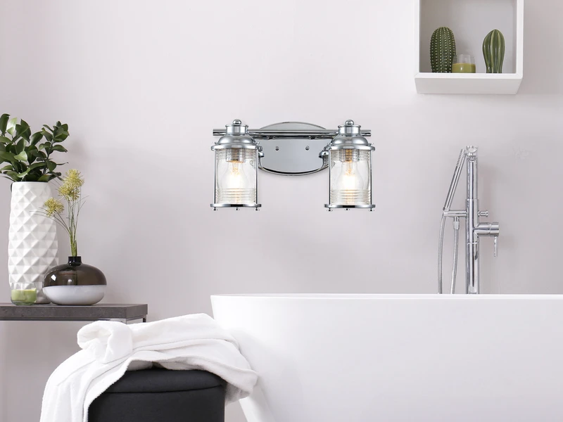 Langweilige Badbeleuchtung war gestern! Diese ausgefallene Innenleuchte im Industrial Style besticht durch ihr ausgefallenes Design und ihre hochwertige Verarbeitung. Der Korpus der Leuchte besteht aus chrom farbigem Stahl, der Lampenschirm aus strukturiertem Glas.