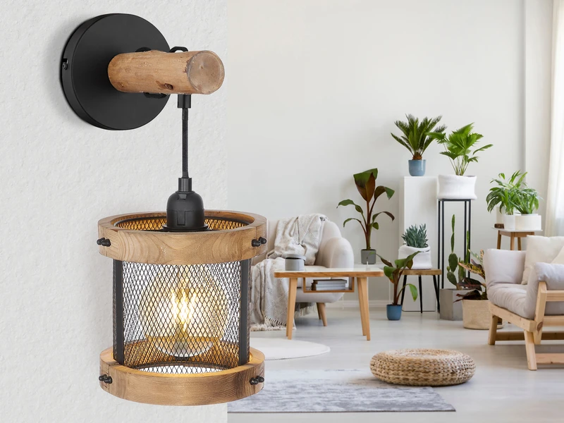Diese stylische Wandlampe ergänzt mit ihrem dekorativen Metallgehäuse jeden Wohn- und Schlafraum perfekt und eignet sich besonders für moderne Wohnstile mit Industrie Charakter oder Vintage-Ambiente. Die Innenlampe lässt sich prima in verschiedene Einrichtungsstile integrieren und ist dank des modischen Gitter Designs schon im Hellen ein wahrer Hingucker.