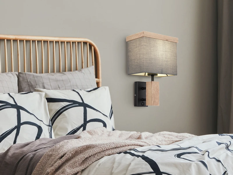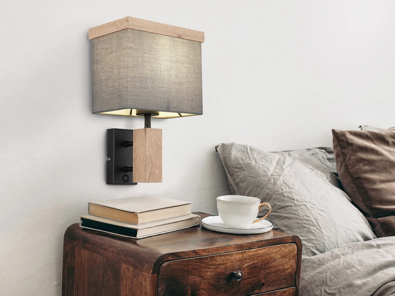 Diese stylische Wandlampe ergänzt mit ihrem schlichten Design jeden Wohn- und Schlafraum perfekt und eignet sich besonders für moderne Wohnstile mit Skandinavischem Charakter. Die Innenlampe lässt sich prima in verschiedene Einrichtungsstile integrieren und ist dank dem angesagten Materialmix aus anthrazitfarbigem Stoff und MDF in Holzoptik schon im Hellen ein wahrer Hingucker.