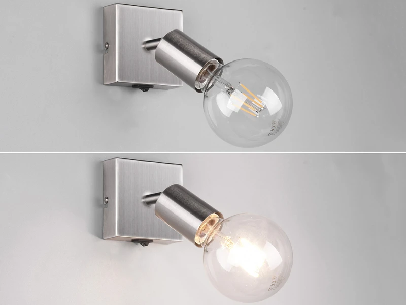 Die kleine Wandlampe ist mit einer E27 Fassung ausgestattet, und wird mit einem 9cm großen, dimmbaren Filament LED geliefert, 8 Watt, 806 Lumen & 2700 Kelvin in Warmweiß.