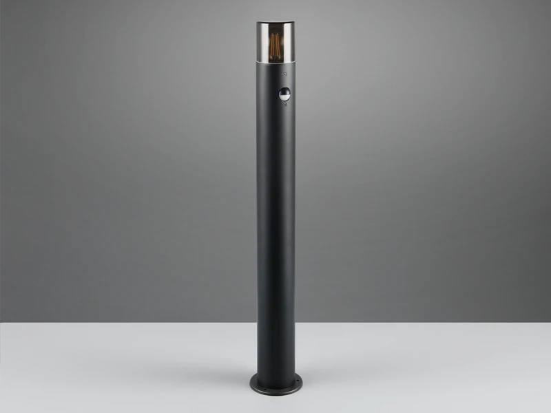 Durch das geradlinige Design in zeitlosem Schwarz matt und rauchfarbigem Kunststoff sorgt die Leuchte für ein modernes Erscheinungsbild und lässt sich vielseitig kombinieren.