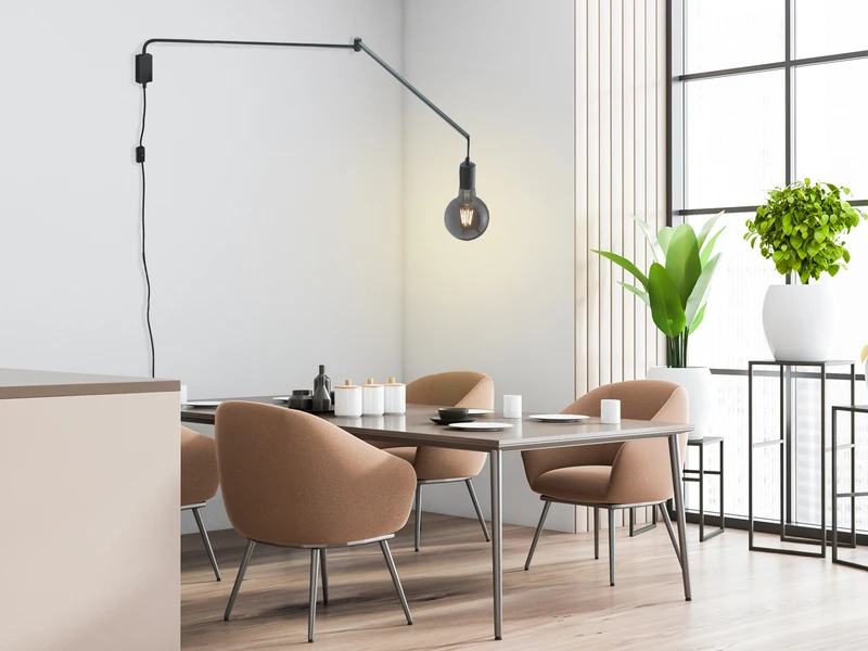 Der schwenkbare Arm bietet mit einer Auslage von 150 cm eine höchstmögliche Flexibilität, so dass die hängende Wandlampe sogar die Pendelleuchte über dem Tisch oder die Stehleuchte neben dem Sofa ersetzen kann. Zusätzlich ist die Wandleuchte mit einem Schnurschalter ausgestattet, wodurch sie leicht ein- und ausschaltbar ist.