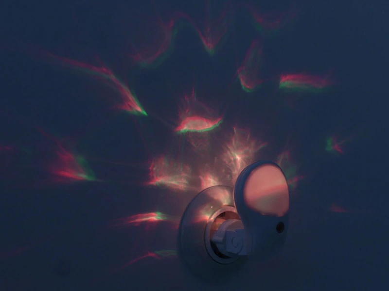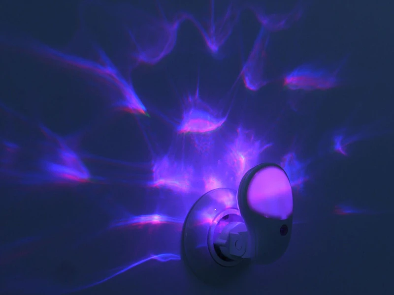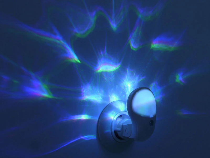 Das Schlummerlicht ist schwenkbar und verfügt als besonderes Extra über einen eingebauten LED-Projektor mit Farbwechsler, der einzigartige Lichteffekte an Ihre Wand zaubert.