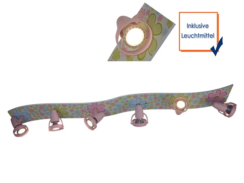 Zum Spielen und kreativen Arbeiten bietet dieser LED Deckenstrahler dank sechs schwenkbarer Spots genügend Licht und ist mit den schönen bunten Blumen immer wieder ein Hingucker.