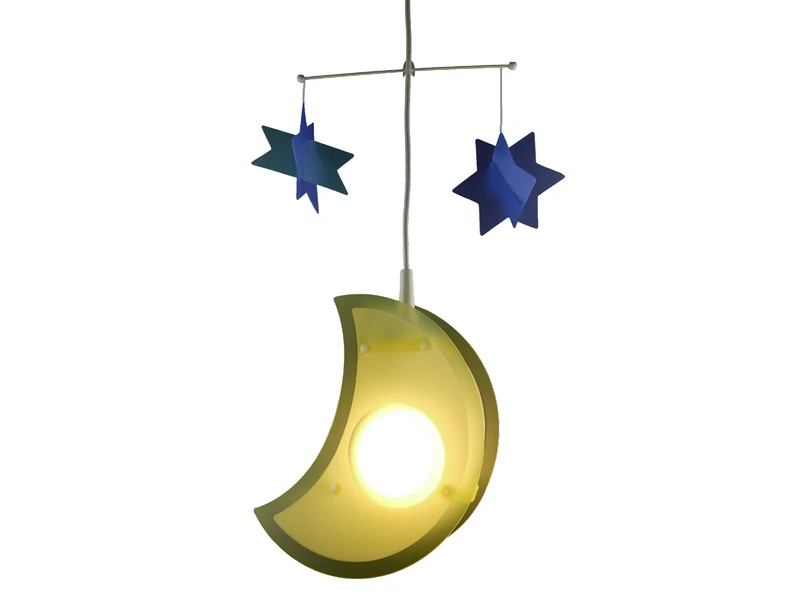 Mit dieser liebevoll designten Hängeleuchte fürs Kinderzimmer strahlen Kinderaugen. Zum Spielen und kreativen Arbeiten bietet diese Kinderleuchte genügend Licht und ist mit Ihrem tollen MOND und den Sternen immer wieder ein Hingucker.