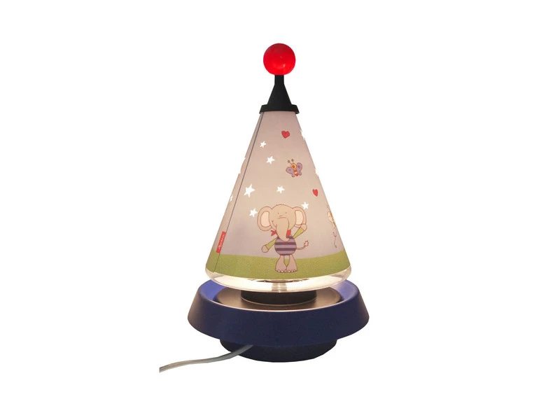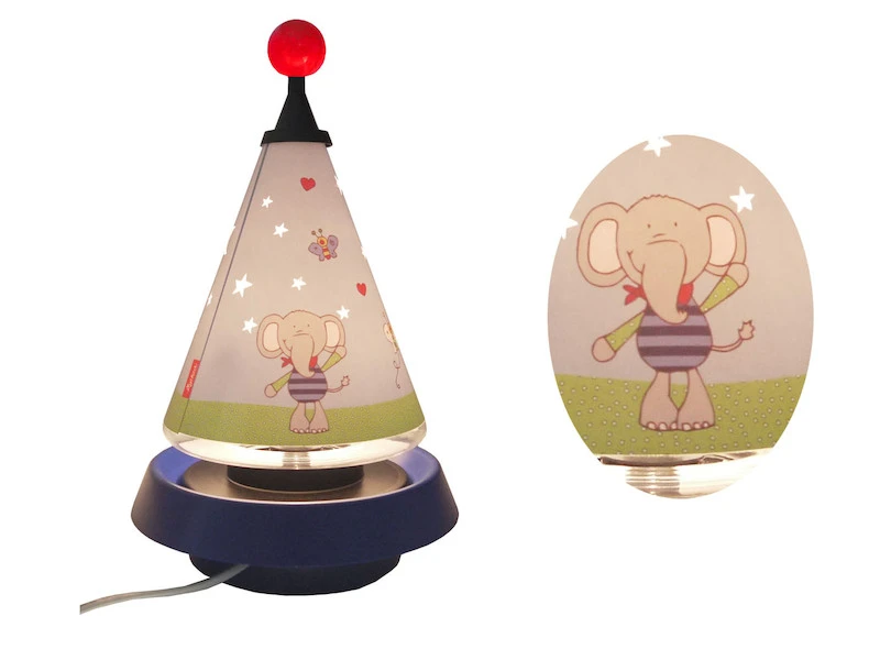 Der Schirm der Nachttischlampe ist mit einem fröhlichen Elefanten bedruckt, und lädt Ihre Kinder immer wieder zum Betrachten und Hinsehen ein.