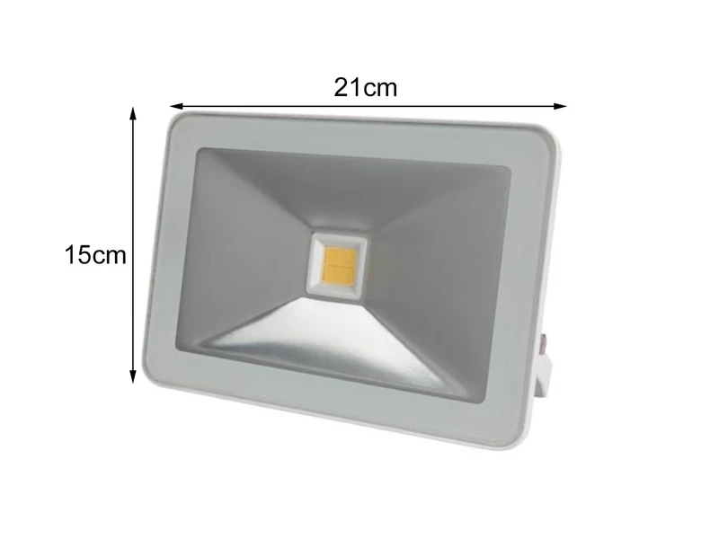 Gefertigt sind die Strahler aus robustem, weißem Aluminium Mit ihrem schlanken Design nehmen sie auch an beengten Stellen wenig Platz ein. Die LED Scheinwerfer sind gerade einmal 3,7 cm dick und haben ein Außenmaß von 21 x 14,7 cm. Dennoch überzeugen sie mit einer starken Leistung von jeweils 30 Watt und 2600 Lumen in Warmweiß.