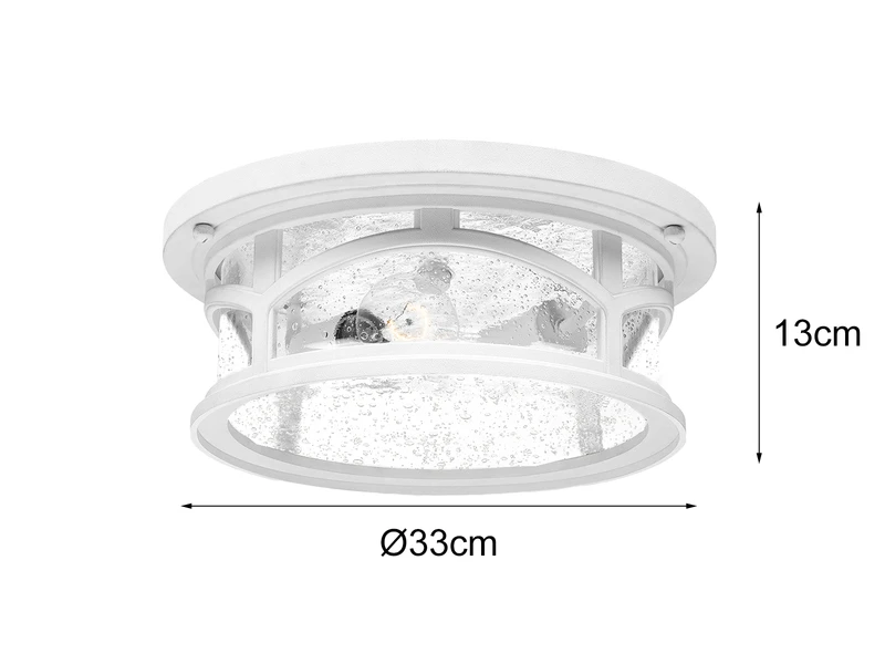 Mit einer Schutzart von IP44 kann diese Außendeckenleuchte in nahezu jedem Outdoor Bereich eingesetzt werden und eignet sich daher ideal zur Außenbeleuchtung für Ihren Eingangsbereich, oder zur Terrassenbeleuchtung.