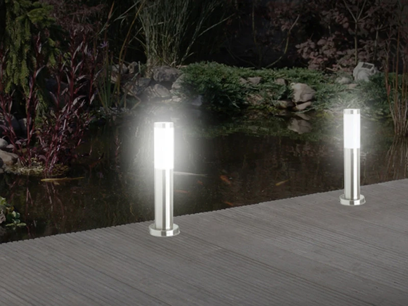 Mit einer Höhe von jeweils 45 cm sowie einem Durchmesser von 7,5 cm sind die Außenleuchten auch bei der Gartengestaltung sehr gut als dekorative Gartenpfosten oder Wegeleuchten geeignet. Durch das nach allen Seiten gleichmäßig scheinende Licht können Sie dabei den gewünschten Außenbereich angenehm ausleuchten und erhalten einen schönen Lichteffekt.