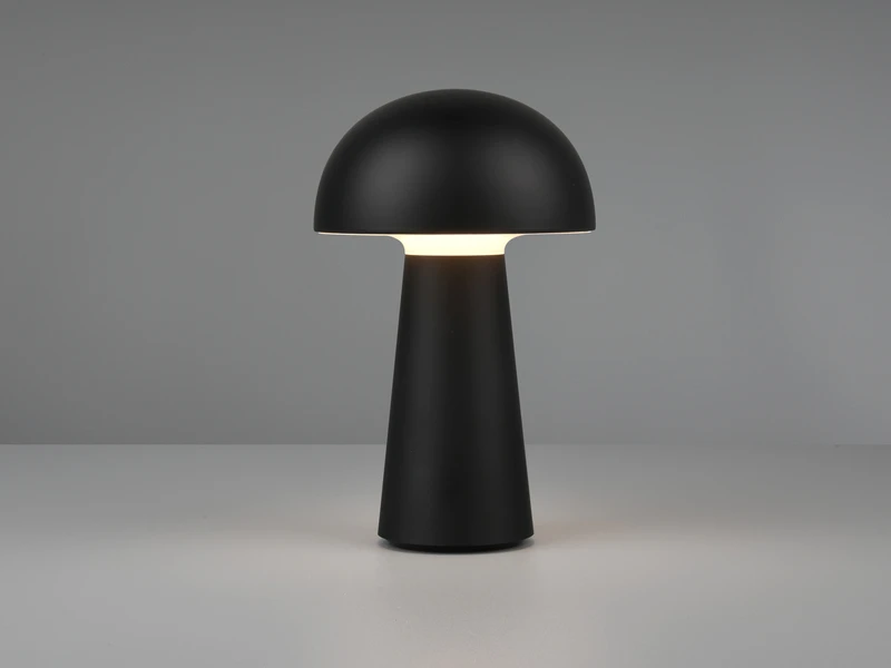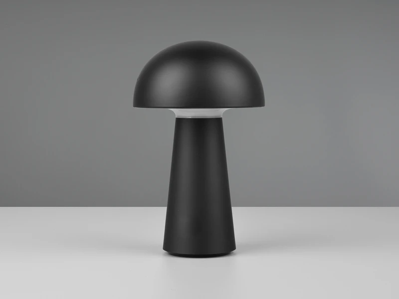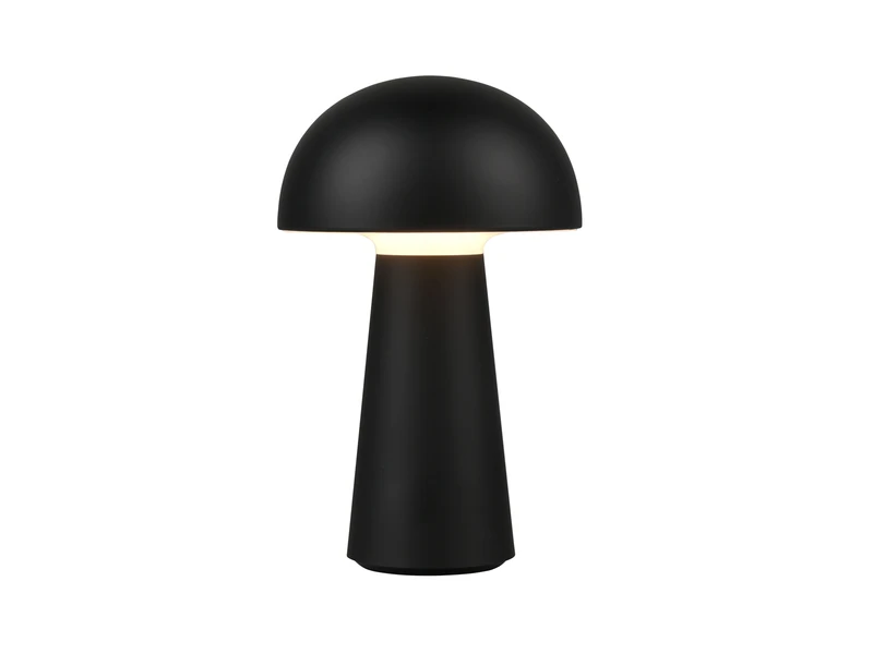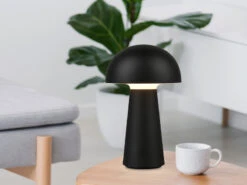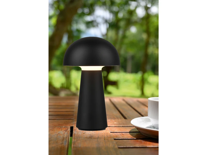 Durch die Klassifizierung IP44 ist die Leuchte vor Spritzwasser geschützt und damit auch für den Außenbereich geeignet. Durch das schlichte und reduzierte Design in Pilz Form, wird die schwarze Tischleuchte zu einem unaufdringlichen Dekoelement das besonders anpassungsfähig ist.