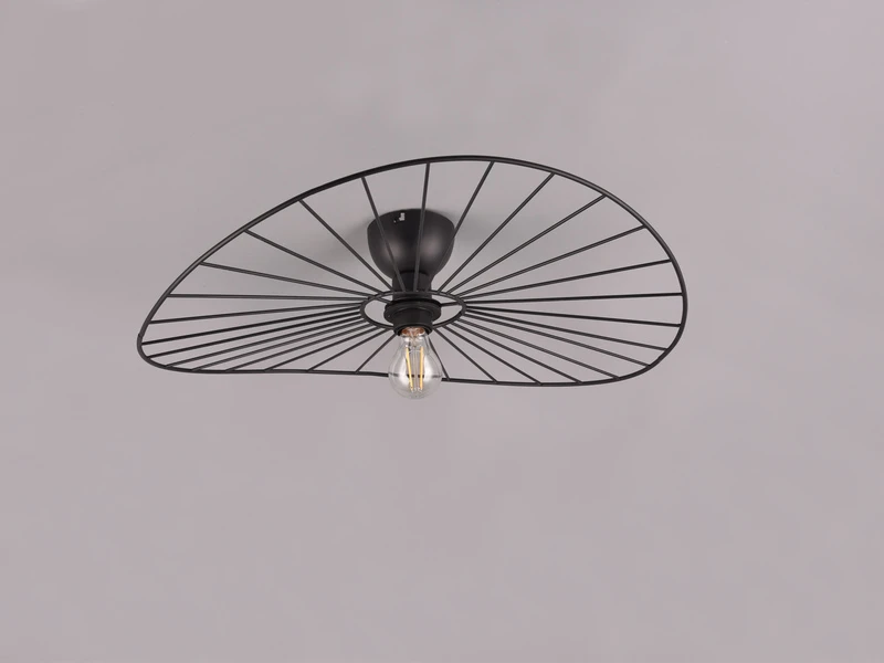 Das besondere Design der Deckenlampe ist geprägt durch den filigranen 15cm hohen Retro Leuchtenschirm mit einem Durchmesser von 60cm aus Metall in Schwarz matt.