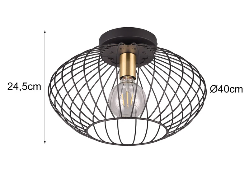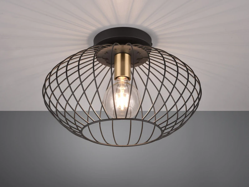 Das kleine Schwarze geht immer! Die Deckenleuchte GRID im Industrial Style punktet mit ihrem schlichtem Design und ist mit fast jedem Einrichtungsstil kombinierbar. Der Gitterlampenschirm aus schwarzem Metall hat einen Durchmesser von 40cm und wird durch einen Leuchtmittelsockel in Messing komplettiert, welcher der Leuchte einen zusätzlichen feinen Akzent verleiht.