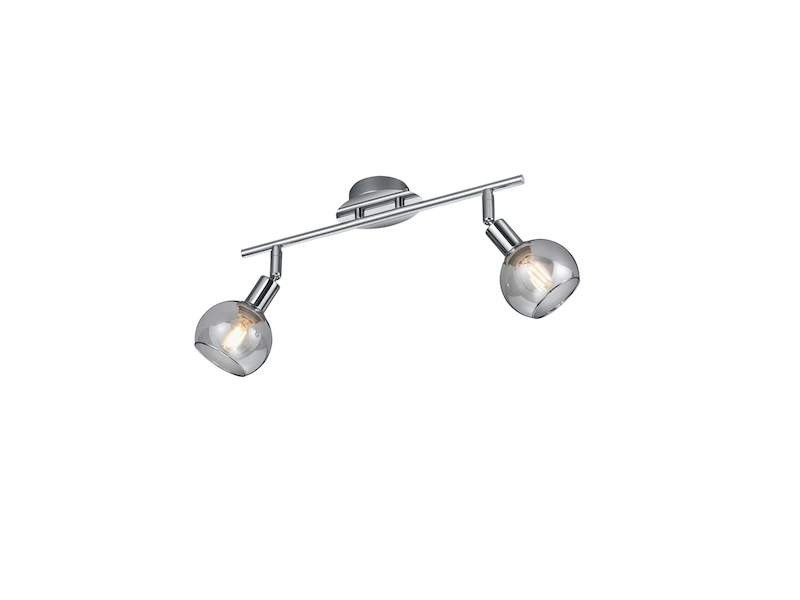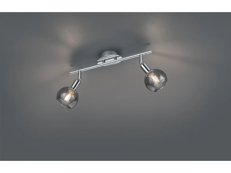 Die Leuchte hat eine Höhe von 20,5cm und eine Breite von 40cm. Dank der Farbgestaltung in Chrom mit den Smoke farbigen Gläsern, bieten sich für die Leuchte zahlreiche Kombinationsmöglichkeiten an.