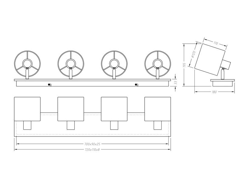Der Wandstrahler ist für 4 x E14-Leuchtmittel bis max. 28 Watt geeignet, dies ist nicht enthalten. Bei Bedarf und Einsatz von geeigneten, dimmbaren Leuchtmitteln können Sie diese Lampe über Ihre Hausinstallation dimmen und so zusätzlich für eine ganz individuelle Beleuchtung sorgen.