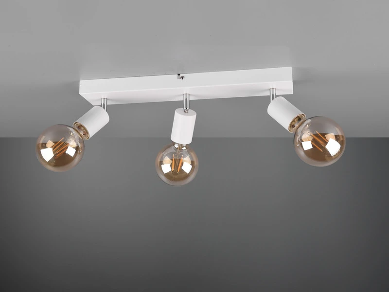 Richtig platziert sorgt der 3 flammige Deckenstrahler so in jedem Bereich Ihres Zuhauses für optimale Lichtverhältnisse. Bei der Auswahl des Leuchtmittels stehen Ihnen alle Türen offen, denn dank des coolen Designs in Weiß matt, sind Kombination mit transparenten aber auch amber-oder rauchfarbigen Leuchtmitteln möglich.