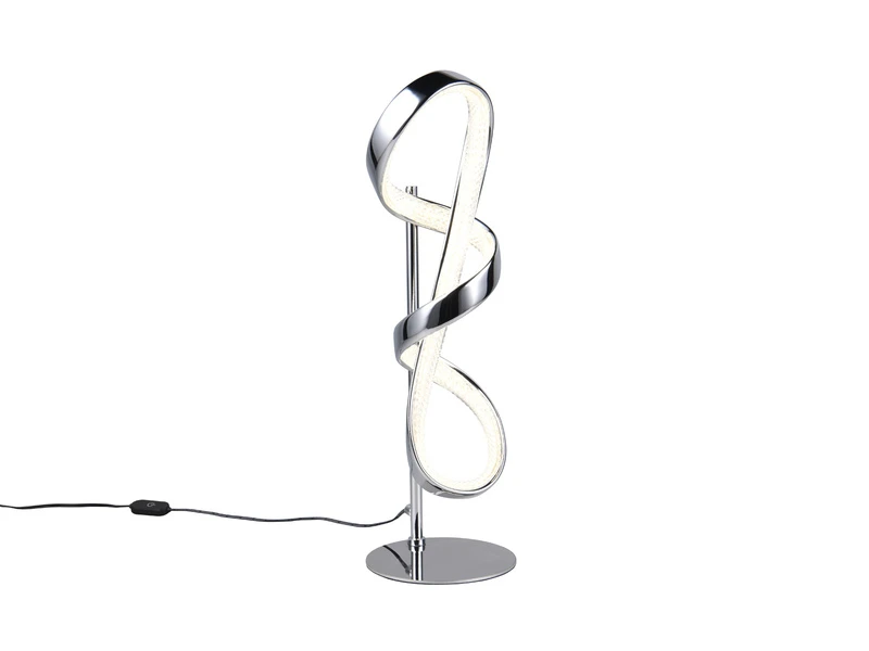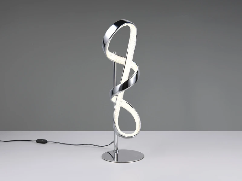 Die ausgefallene Tischlampe präsentiert sich in geschwungenem Design als echtes Highlight auf dem Couchtisch oder dem Sideboard. Mit der Farbtemperatur Neutralweiß (4.000 Kelvin) eignet sie sich für Arbeitsbereiche wie Küche oder Arbeitszimmer, aber auch für modern eingerichtete Wohnzimmer oder Schlafzimmer.