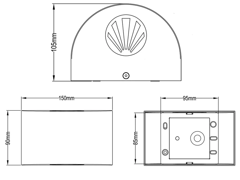 Das Up and Down Light hat eine Höhe von 9 cm, eine Breite von 15 cm und eine Tiefe von 10,5 cm. Der Lichtstrahl nach oben und unten kann, durch die mitgelieferten Abdeckungen in verschiedenen Designs, variiert werden. So wird die Leuchte im eingeschalteten Zustand zu einem echten Eyecatcher auf ihrer Hauswand.