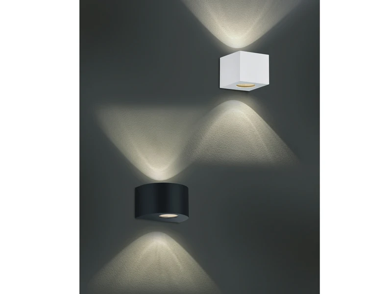 Die Wandleuchte für außen ist mit zwei fest verbauten LED Modulen ausgestattet, welche mit einer Leistung von je 2 Watt und 200 Lumen bei einer Lichtfarbe von 3000 Kelvin für eine angenehme Beleuchtung in warmweiß sorgen.
