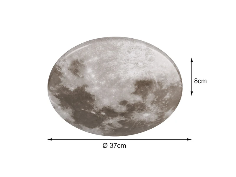 Ein zusätzliches Highlight der besonderen Leuchte ist die IP44 Klassifizierung, wodurch die Leuchte gegen Spritzwasser geschützt ist und somit auch in Feuchträumen wie Badezimmer und Gäste WC verwendet werden kann. Das Cover der Deckenleuchte ist aus weißem Kunststoff, das optisch eine Mondoberfläche darstellt.