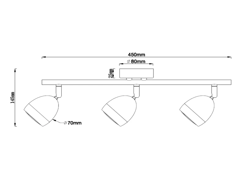 Der Deckenstrahler verfügt über drei GU10 Fassungen und wird inklusive drei LED Leuchtmitteln mit einer Leistung von a´ 3 Watt, 280 Lumen & 3000 Kelvin in Warmweiß geliefert.